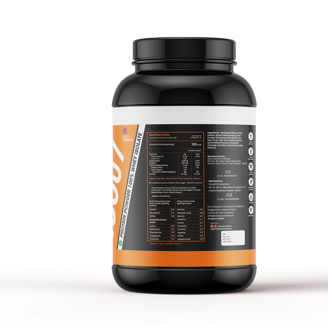 Norway Nutrition Isolate ISO07 | 100% Whey Isolate | 26g Protein, 6.6g BCAAs per Serving | 120 Calories | Zero Added Sugar